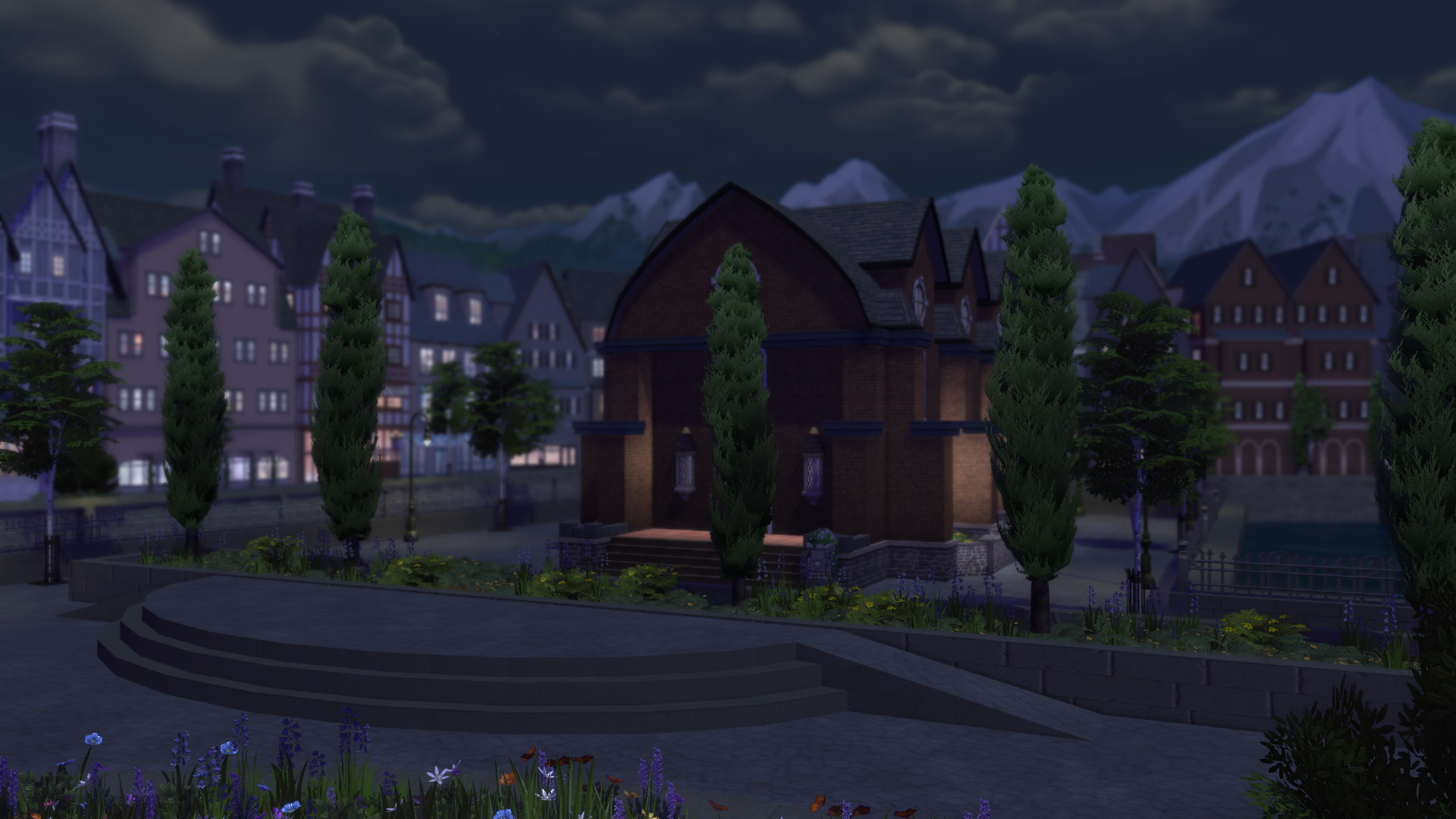 Déjà, la couleur sur la carte change tout ! Ensuite, le monde est grand : 2 bars, 2 cafés, 1 bibliothèque, 1 salle de sport, 2 discothèques, 1 piscine municipale, 1 petit parc, le château, les ruines… Des maisons habitées par des sims et 2 terrains vides.